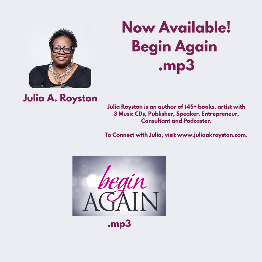 Starting all over can be hard, rough, tough but necessary. You now have a clean slate and a fresh start. When you Begin Again, you should be smarter, wiser and better. Julia Royston has some experience with starting again. This Music will be there to help put some end to some things and beginning to others. Let this book be the ingredient, steps and processes to “Begin Again.”