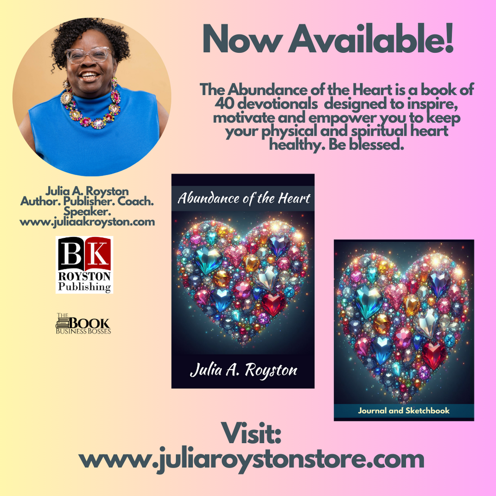What’s going on deep down inside of Your Heart? That’s a question that only you can truly answer but we’ll get hints by what you say and what you do. Luke 6:45 (KJV) tells us that “for of the abundance of the heart his mouth speaketh.” If we talk long enough, you will tell me. The old folks used to say, ‘you tell on yourself.’ The heart keeps the body moving but if you don’t take care of your heart, the body will eventually be dead and in the ground because the heart stopped working. The heart holds an abundance of emotions, information and direction. The Abundance of the Heart is a book of 40 devotionals designed to inspire, motivate and empower you to keep your physical and spiritual heart healthy. Be blessed and enjoy the Journal too.